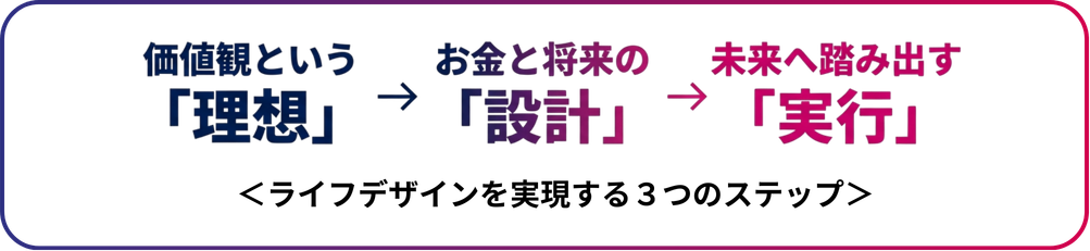 お金や将来の見通しという「生活の土台」があってこそ、 想いを現実にすることができます。